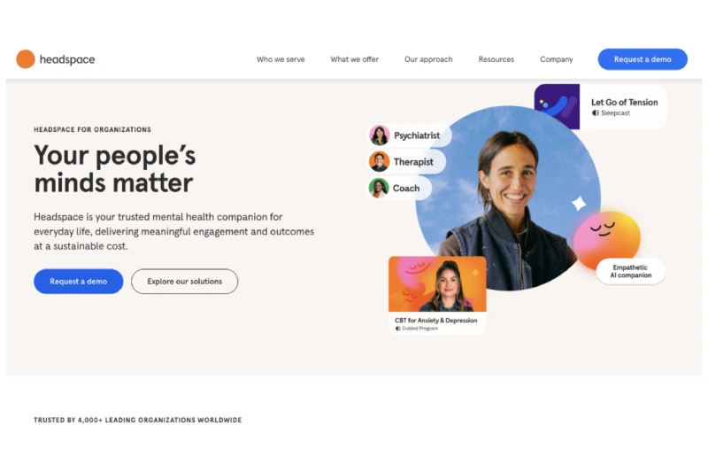 Headspace for Work : Combines AI-enhanced coaching with clinical mental health care access.